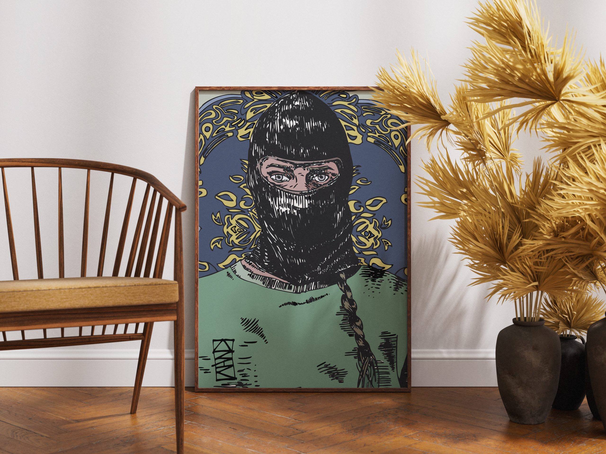 Questa illustrazione cattura l’essenza di una ragazza con un passamontagna, simbolo di ribellione e forza. Realizzata con pennarelli e poi colorata con Adobe Illustrator.