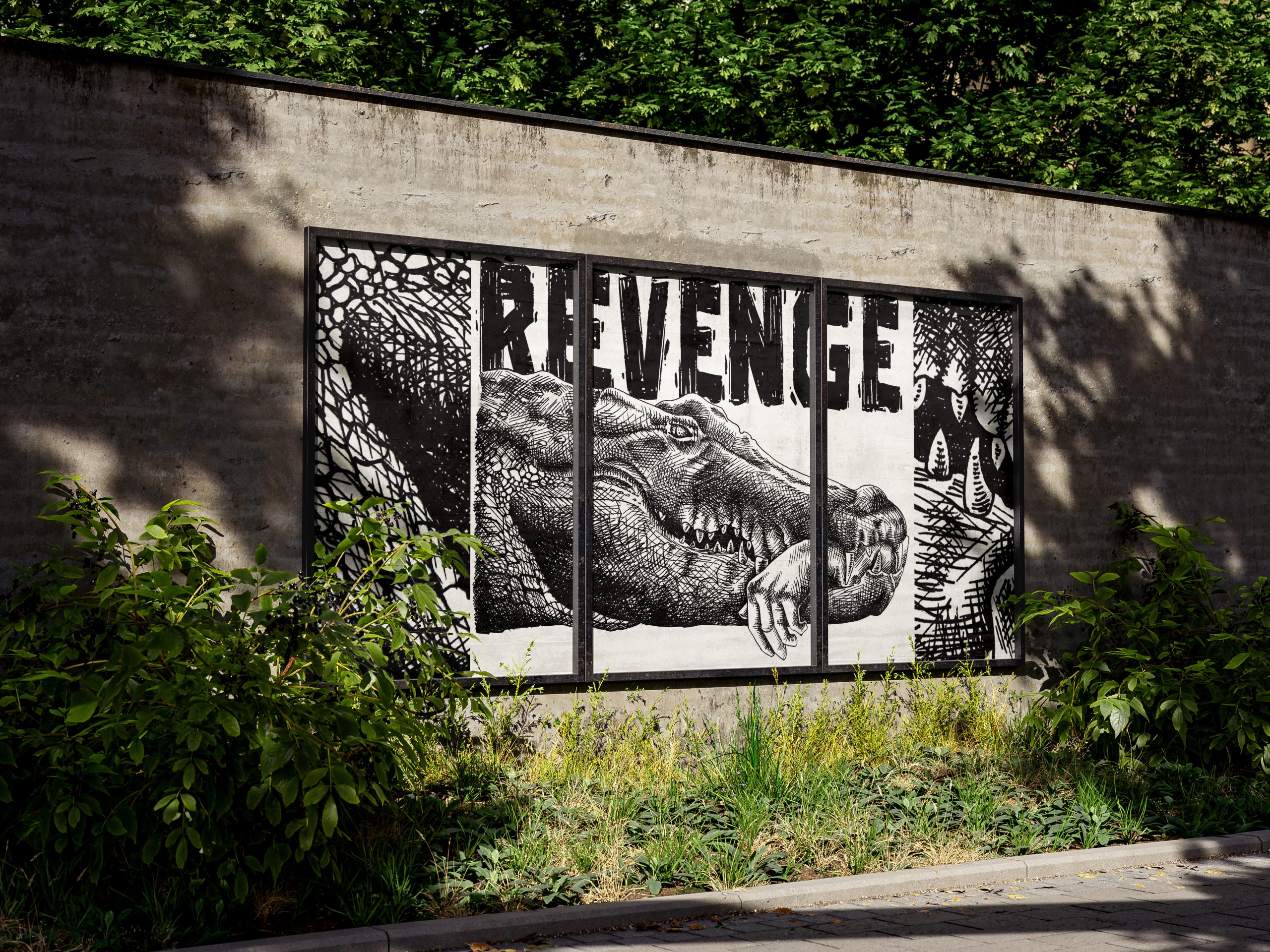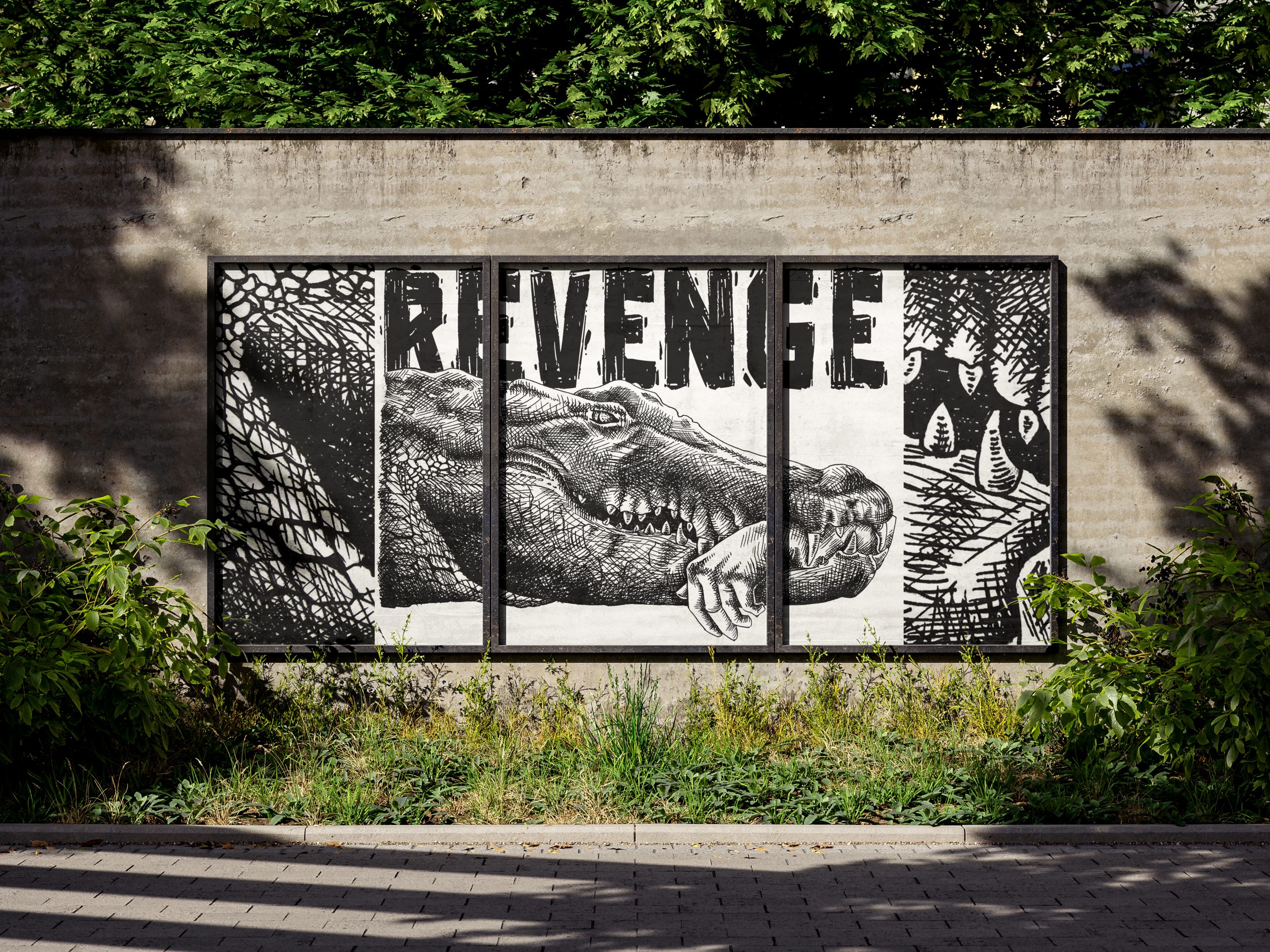 Questa illustrazione realizzata con pennarelli neri a diverse punte, rappresenta la rivincita della natura sull’uomo.