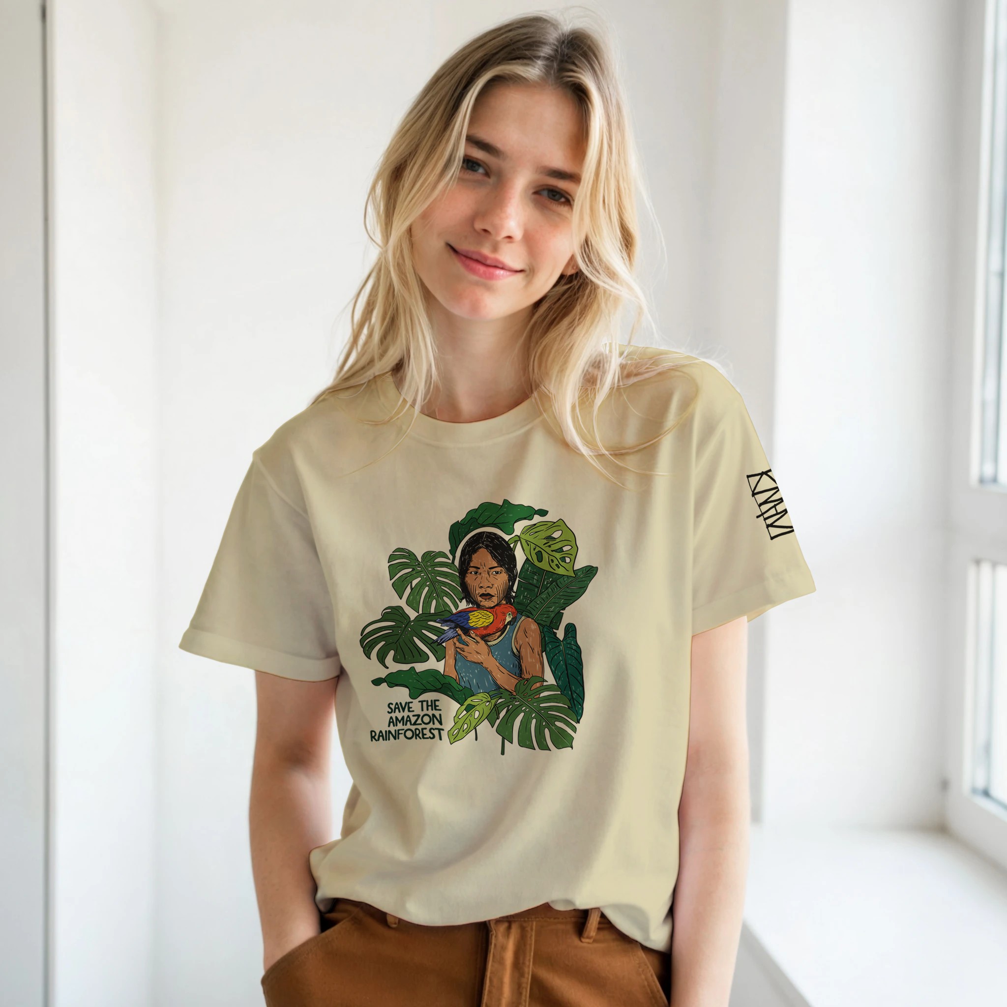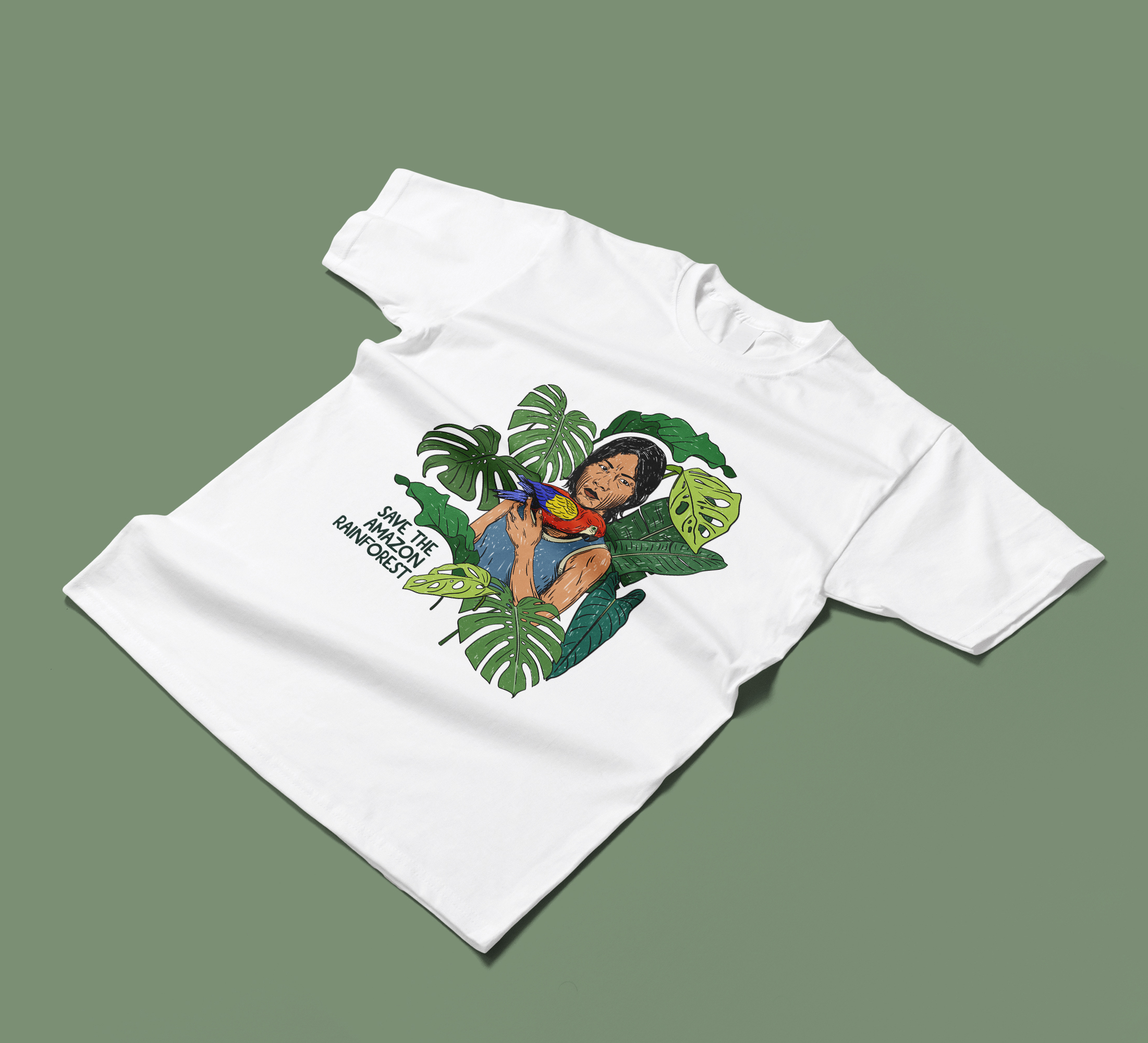 Questa grafica l’ho realizzata in onore della foresta amazzonica e del popolo indigeno che la protegge. La foresta amazzonica è la foresta pluviale tropicale più grande del mondo, si estende per 6 milioni di km quadrati. È fondamentale per l’equilibrio climatico globale, ospitando un’incredibile biodiversità e contribuendo in modo significativo alla produzione di ossigeno, tanto da essere definita il “polmone verde della terra”. Tuttavia, è minacciata da deforestazione, agricoltura, allevamento, incendi e sfruttamento delle risorse.
